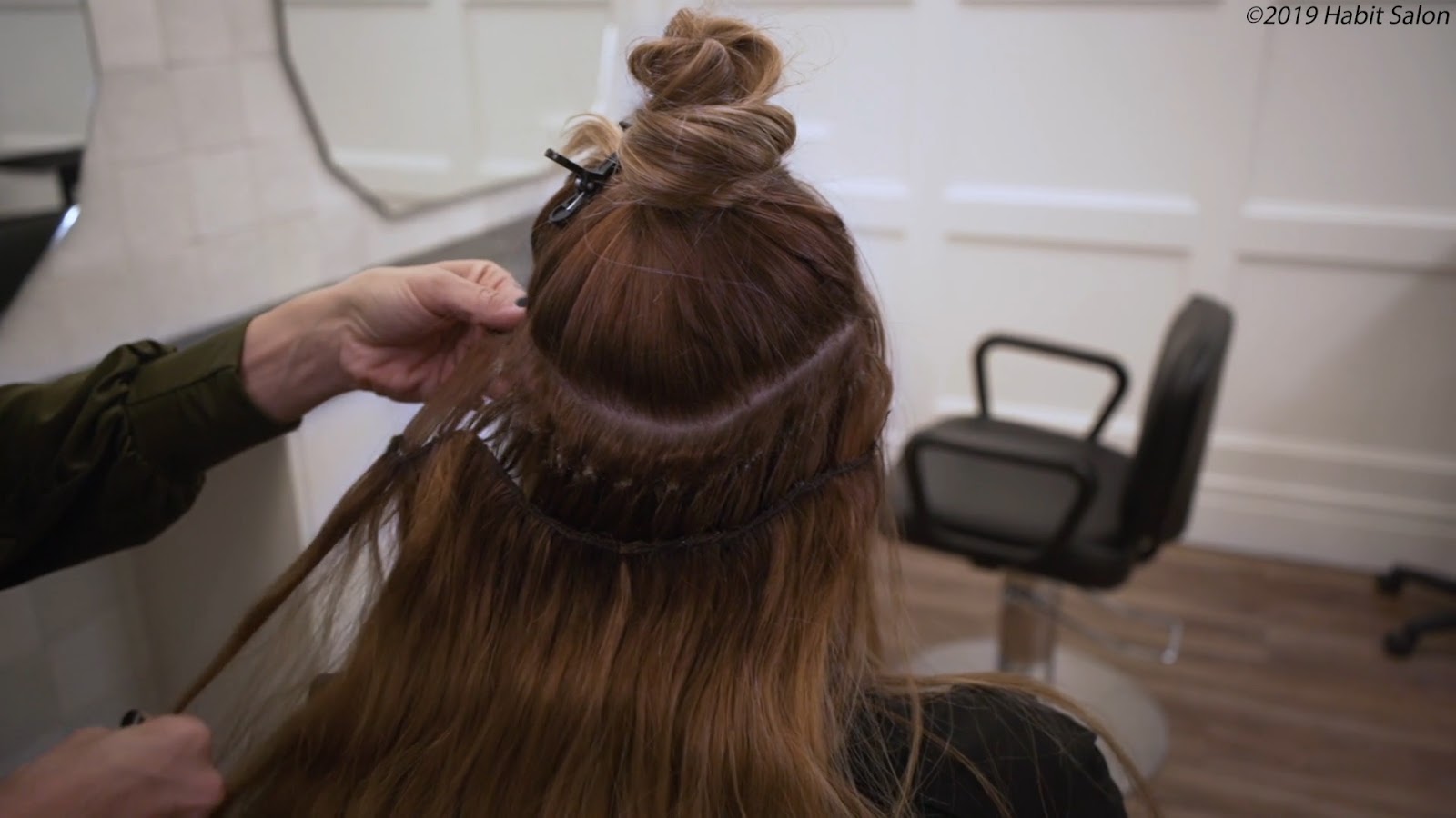 After watching the removal video. Remove both rows of extensions from your mannequins head. Clean up wefts and brush through hair to prepare for practicing a Move up!